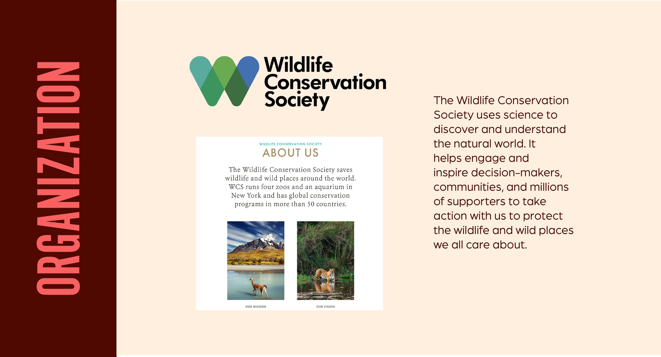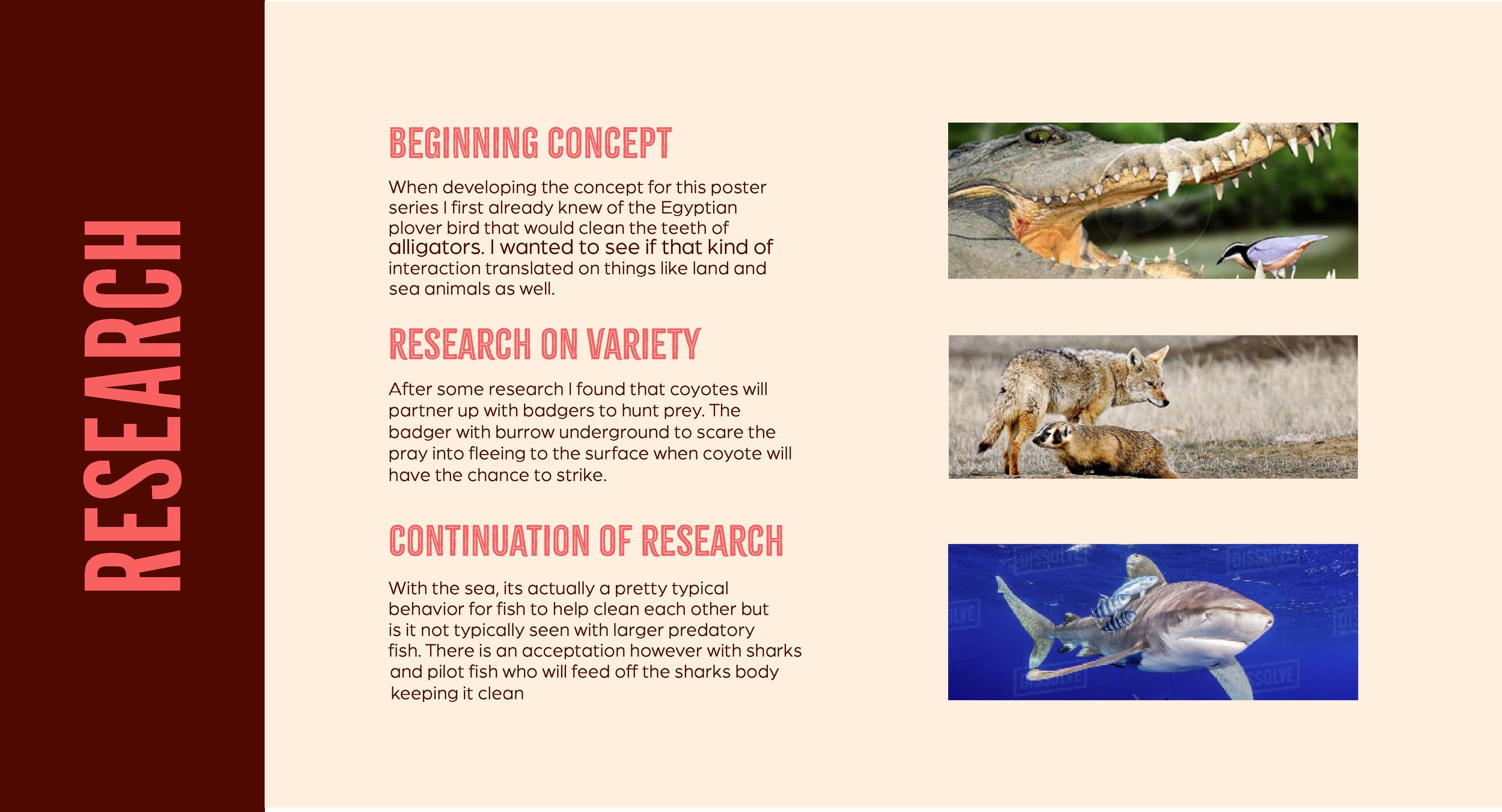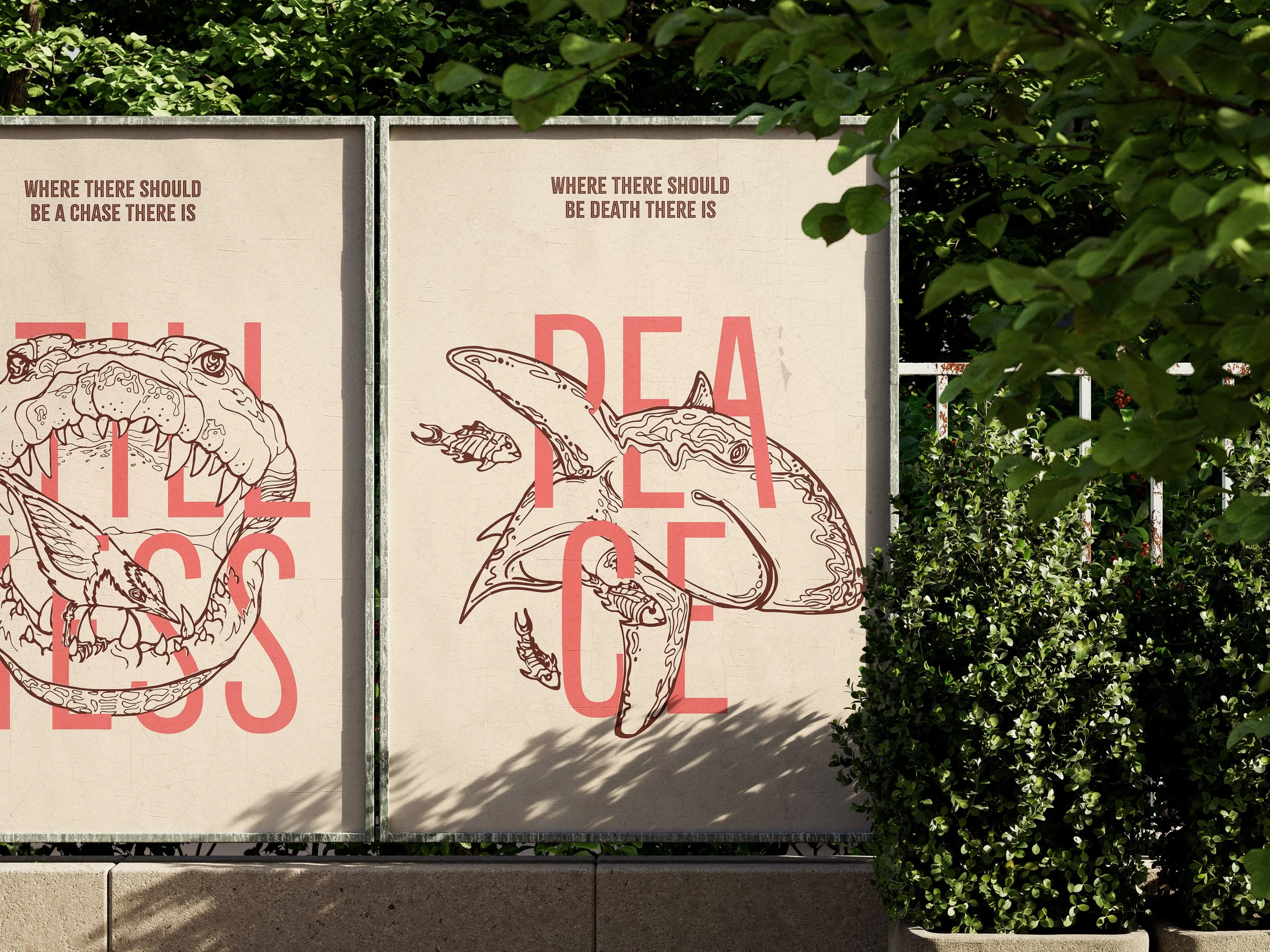 Wildlife Avocational Poster series This project was a design campaign for the Wildlife Conservation Society. The conceptual theme for the poster series was the topic of mutualism. How creatures who should be at odds work together in harmony, coexisting for the benefit of themselves. In the same way we as humans should do our part to protect and preserve wildlife in the mutual benefit for them and our world. Poster Campaign - Fall 2025 PROJECT DETAILS: