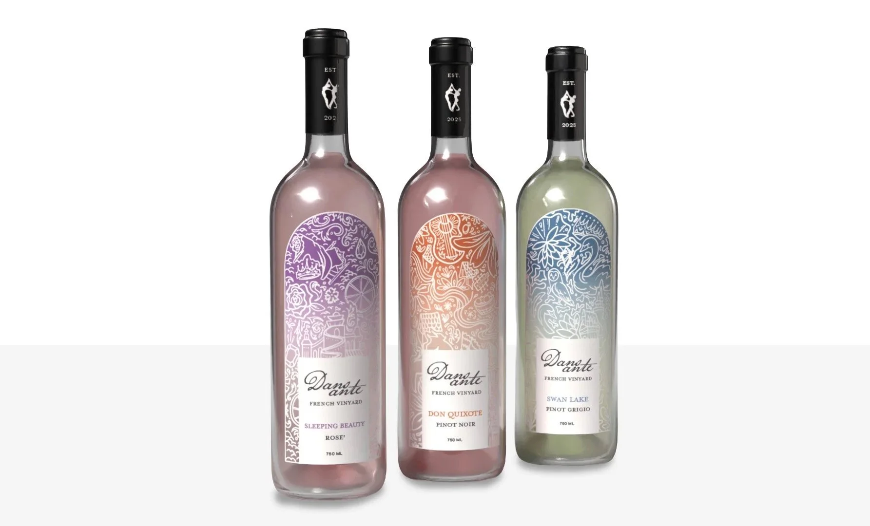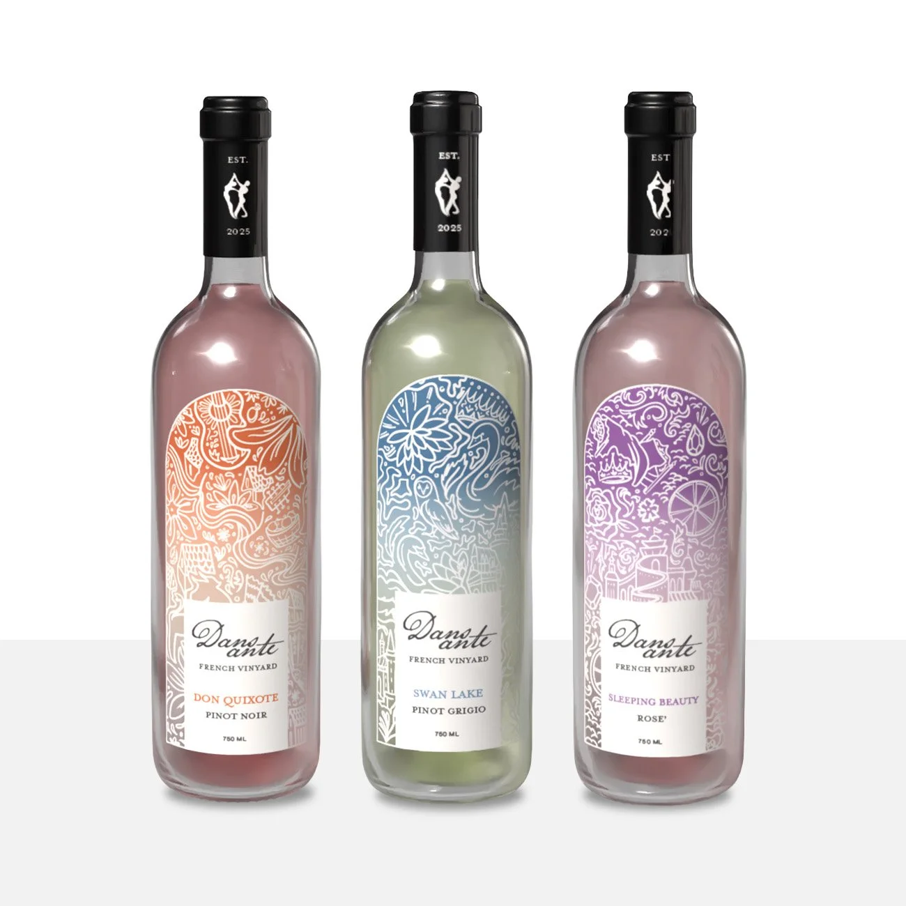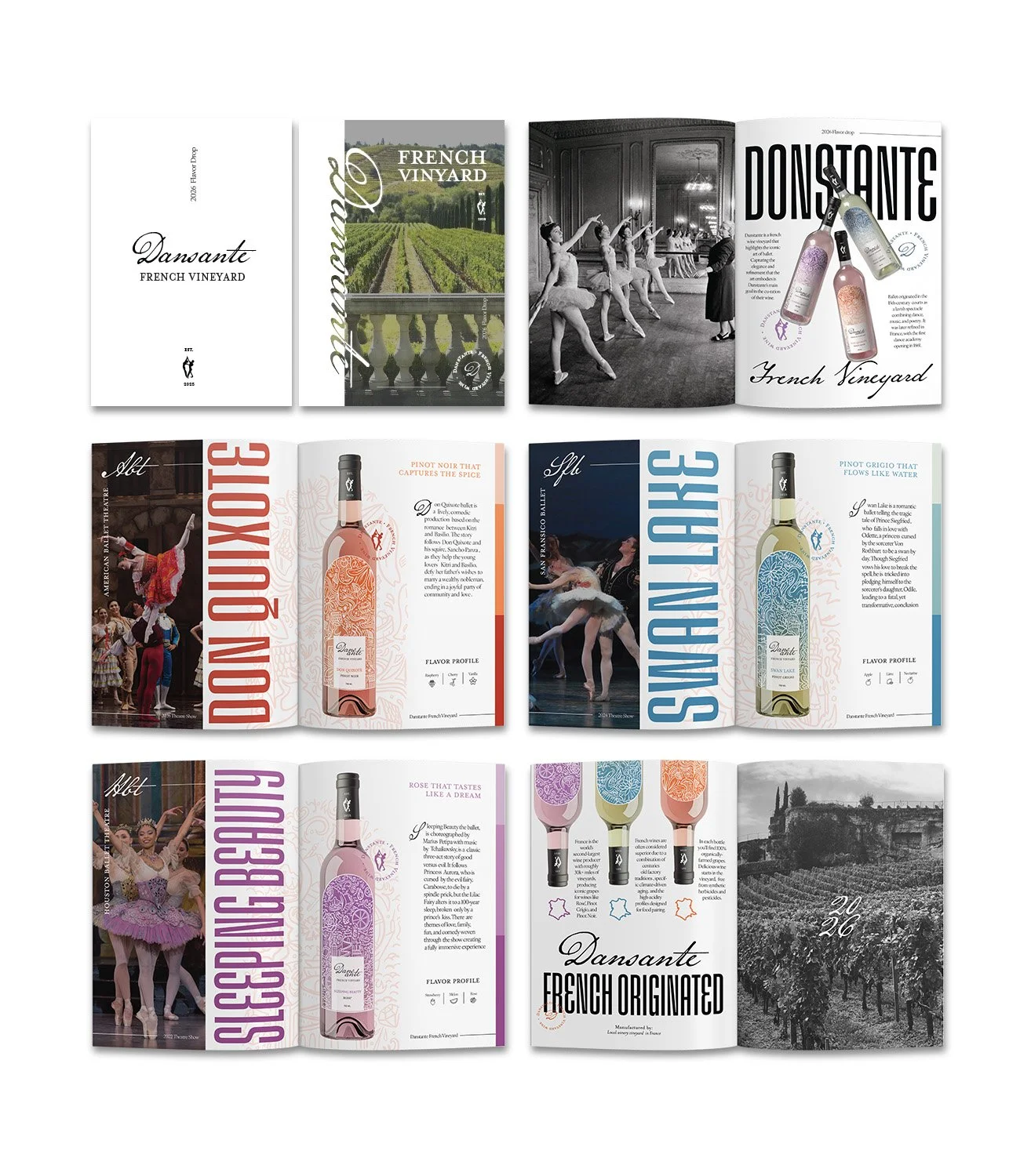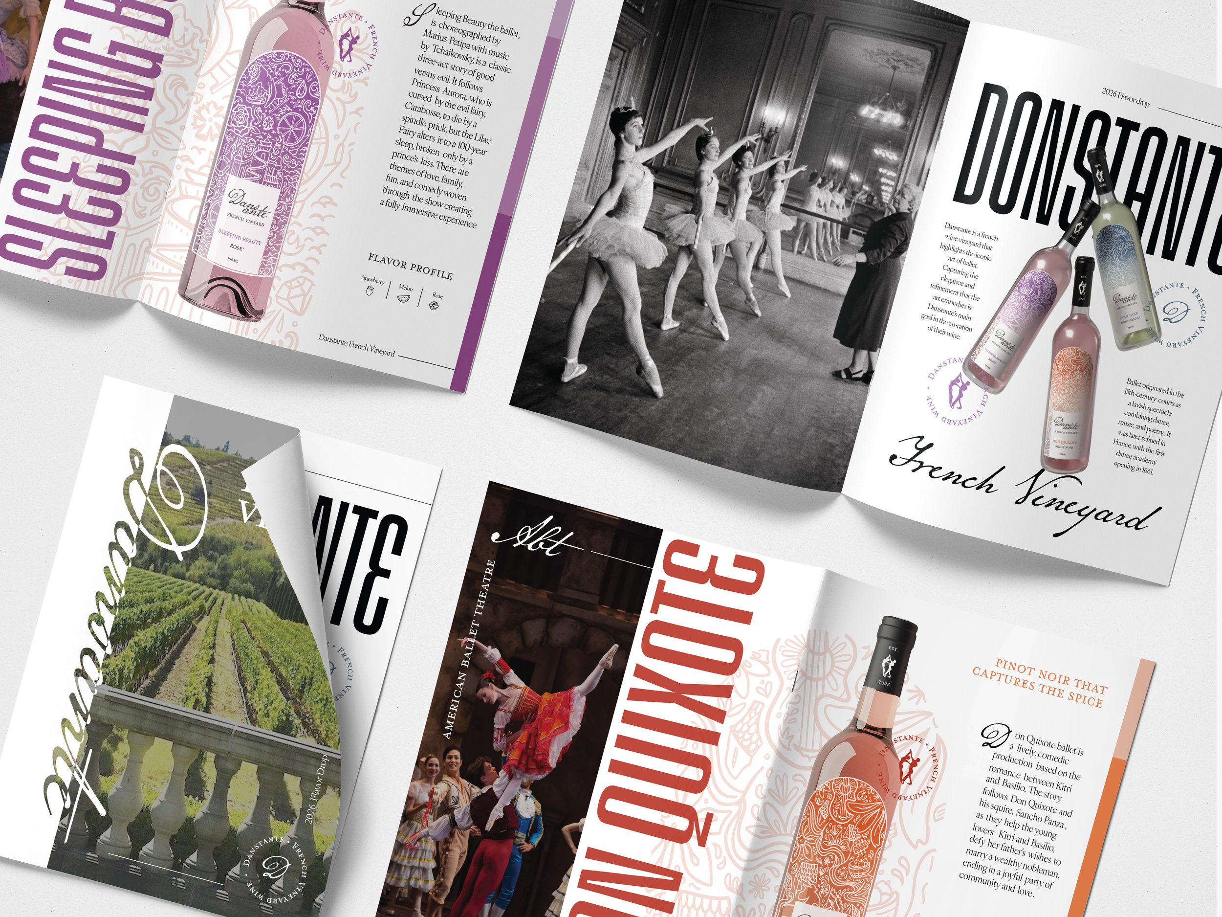 WINE THAT BRINGS THE STORIES OF BALLET TO LIFE This project was a packaging design project for a fictional wine brand. I created Dansante to highlight the rich history of the art of ballet. Ballet being french, I was inspired by french typography, colors, and illustration styles. I also created an editorial magazine to further breakdown the history and significance of the brand and the ballets represented. Packaging / Editorial - Fall 2025 PROJECT DETAILS:
